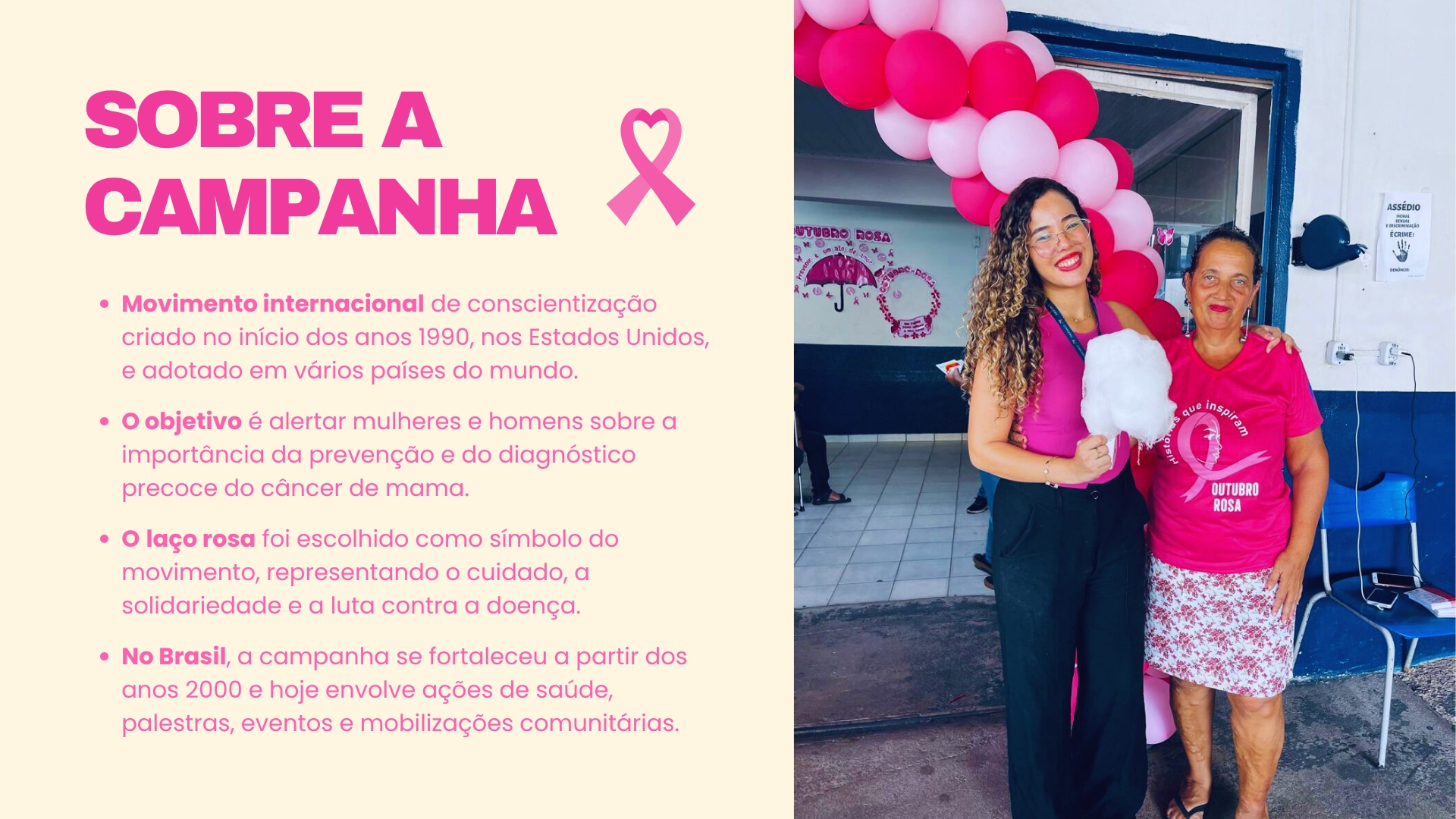 A enfermeira Luciana, do Hospital de Amor, foi convidada especial da ação e conduziu uma palestra sobre prevenção, diagnóstico precoce e autocuidado, reforçando a importância de falar sobre o câncer de mama com coragem e empatia.